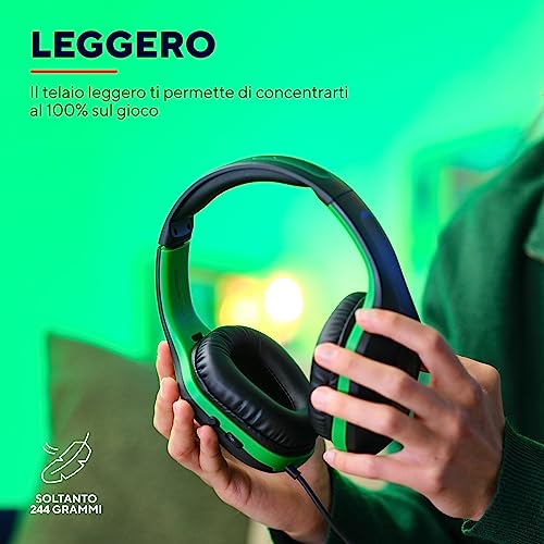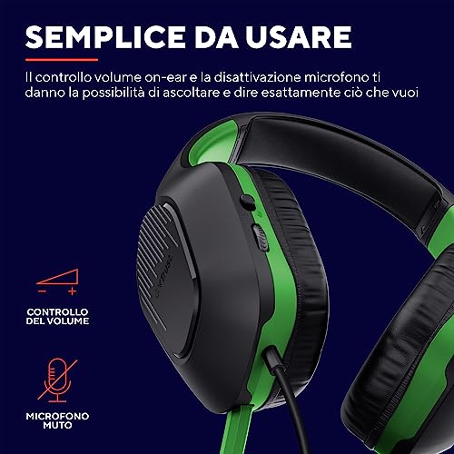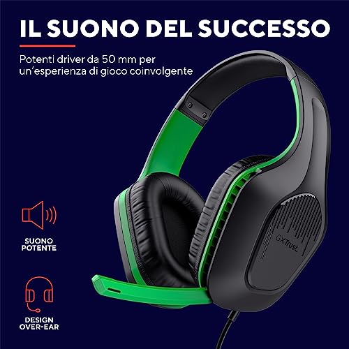 Trust Gaming GXT 415X Zirox Cuffie Gaming Leggere per Xbox Series X/S con Driver da 50 mm, Jack Audio 3.5 mm, Cavo 1,2 m, Archetto Regolabile, Cuffie con Microfono Over-Ear – Nero/Verde